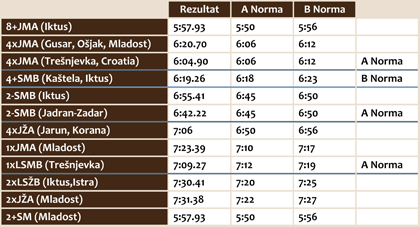 Prva posada je na cilju bila prva mada zajedno nisu napravili niti jedan trening, dok je druga posada bila 2. Kod obje posade treba puno raditi na tehnici, jer momci su fizički jaki ali treba tu snagu znati koristiti u zaveslaju.